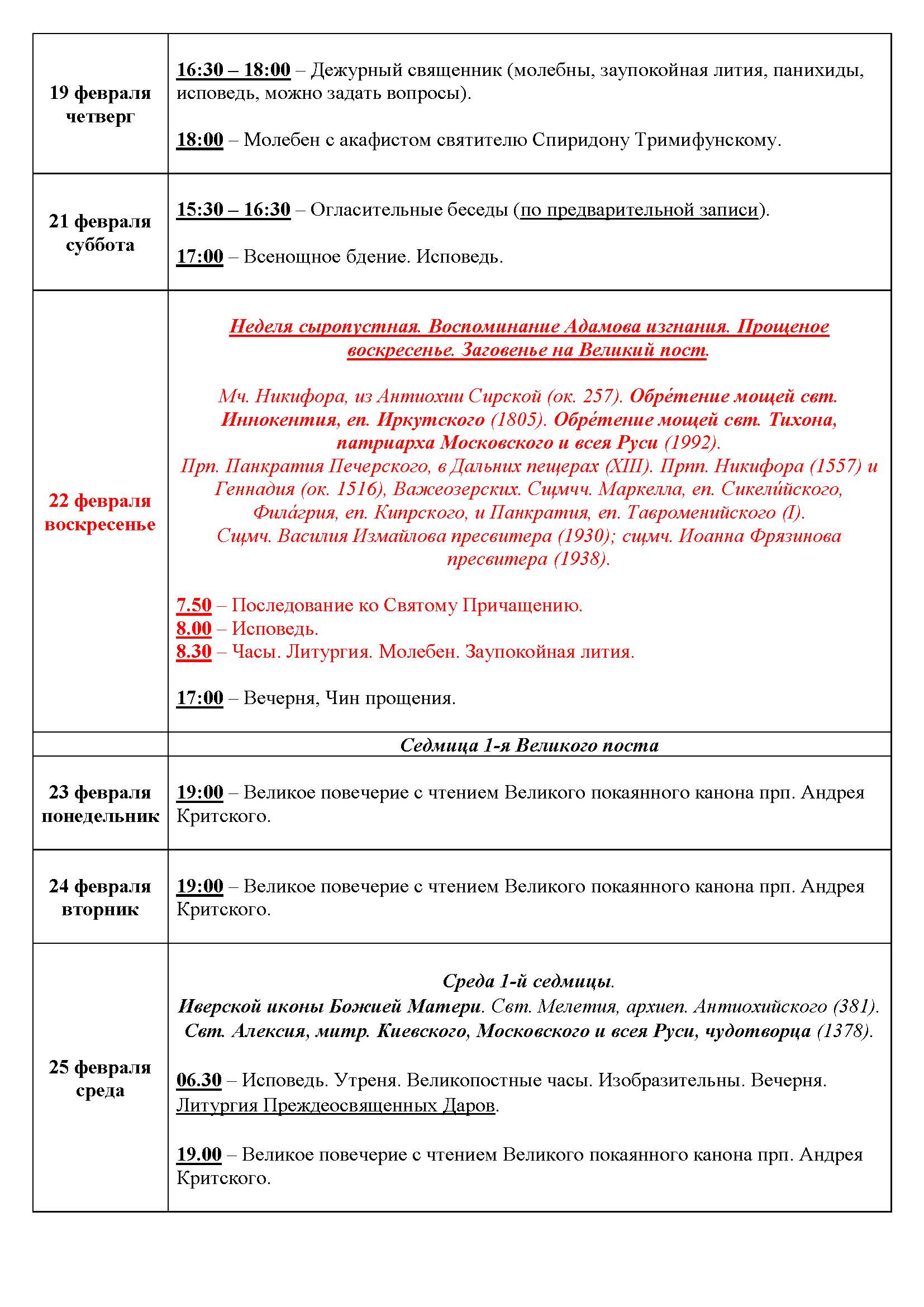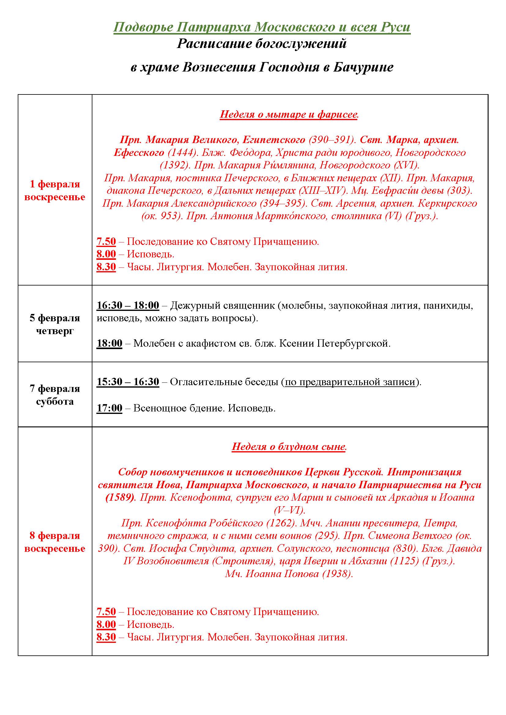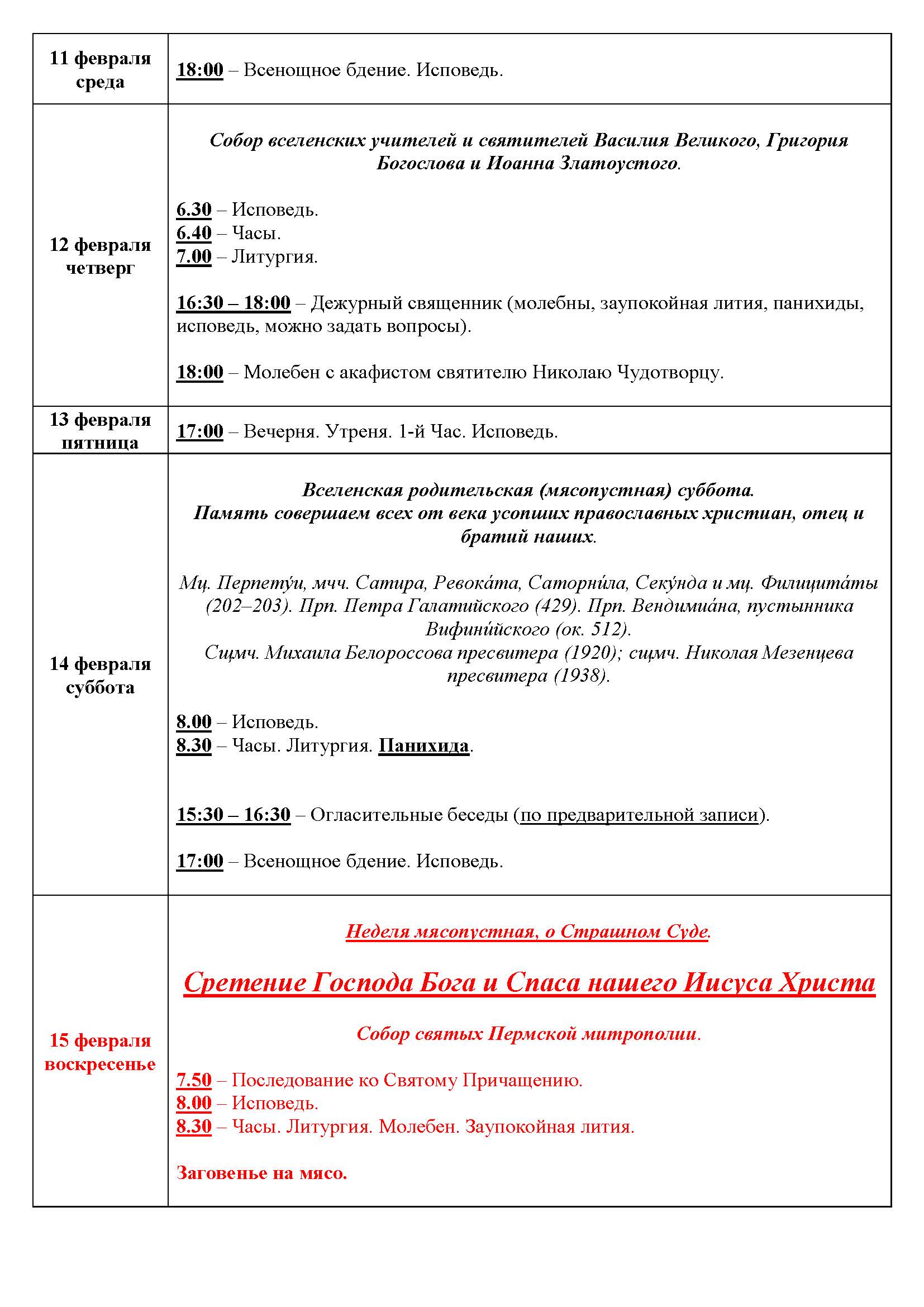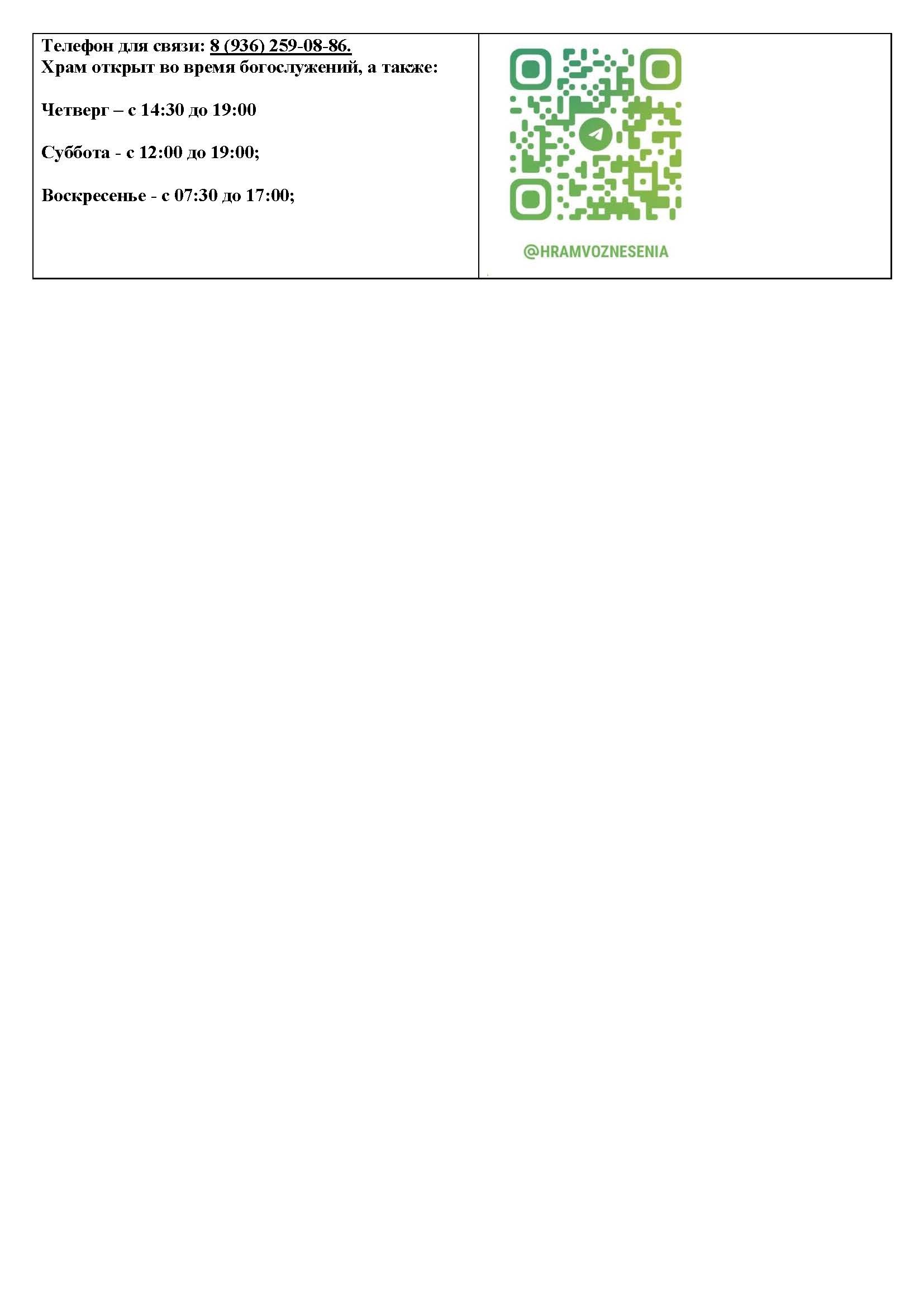 Храм открыт во время богослужений, а также: